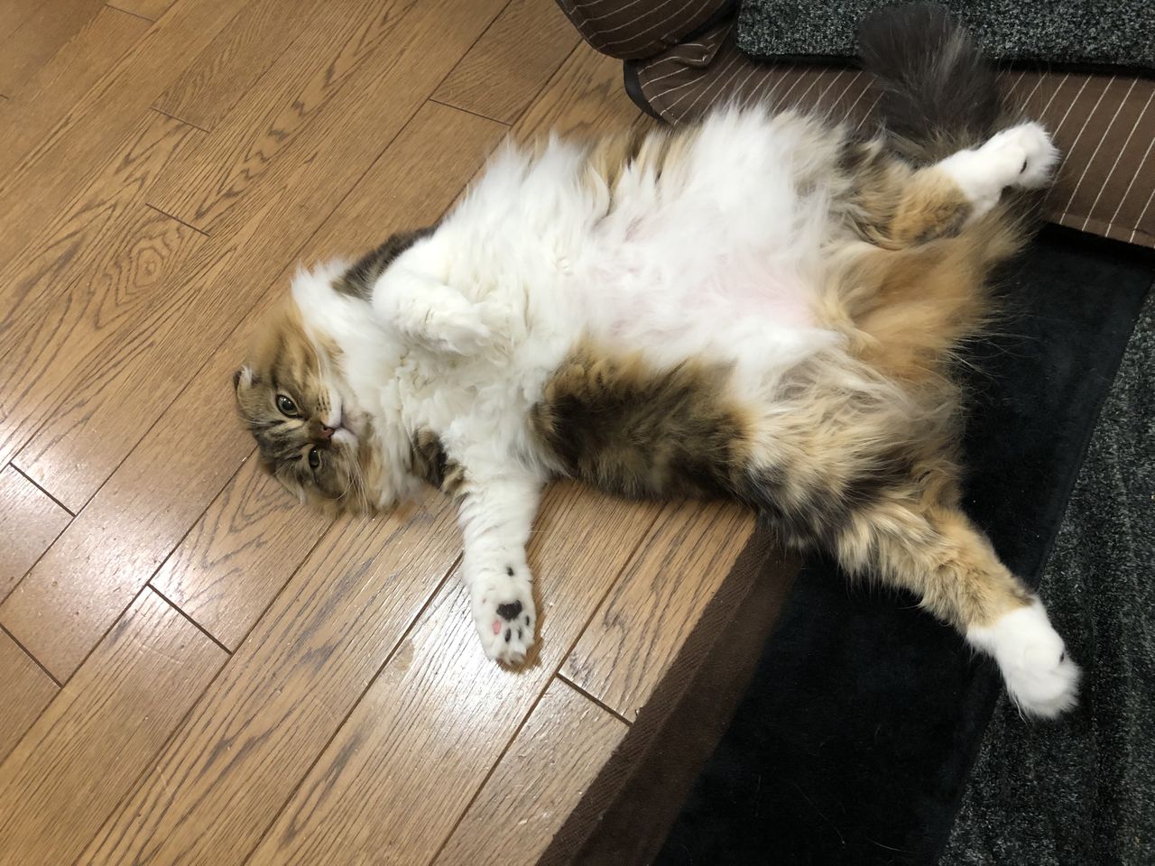 お腹を上にして寝そべっている。